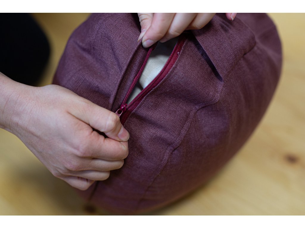 Povlak podsedáku je na zip, lze jej tedy sundat a prát na 40 °C. Sýpek uvnitř je bavlněný a má také menší zip, pokud byste si chtěli pohankové slupky přidat nebo usypat a přizpůsobit tak tvar podsedáku svým potřebám.